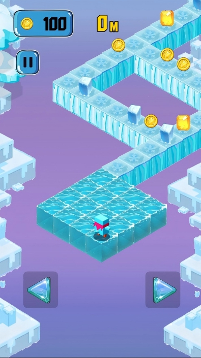 《米小白》是一款以物理跳跃为核心的休闲闯关游戏。玩家将引导活泼的米小白,在晶莹剔透的冰晶之路上展开冒险。游戏采用极简的单指操控——轻触屏幕控制跳跃力度,长按实现更高跃起。每一次落脚都需精准果断,因为每块承重冰砖仅能支撑短暂时间,在角色跃离后便会碎裂坠入虚空。